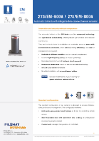 The 275/EM 800A automatic bollard stands out for its greater height compared to the 600A, making it more visible and therefore better suited for contexts where maximum visual perception is required, even for heavy vehicles. It maintains the same features as the 600A: full LED strip, TüV-certified impact resistance, and a usage frequency of 1,000 cycles/day.