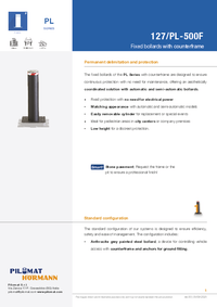 Il dissuasore fisso 127/PL 500F offre una protezione solida con un design essenziale e compatto. Grazie al suo look discreto, è in grado di integrarsi armoniosamente in ogni contesto, sia urbano che privato.