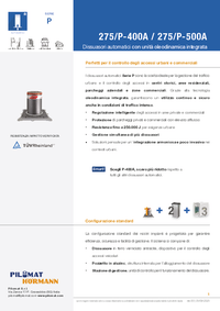 Il dissuasore automatico 275/P 500A è ideato più per dissuadere che per bloccare. Grazie ai tempi di discesa rapidi, solo 2 secondi, è ideale per la gestione degli accessi in contesti pubblici e privati. Come la versione 275/P 400A è meno invasivo visivamente. È disponibile in acciaio inox, con striscia LED completa RGB.