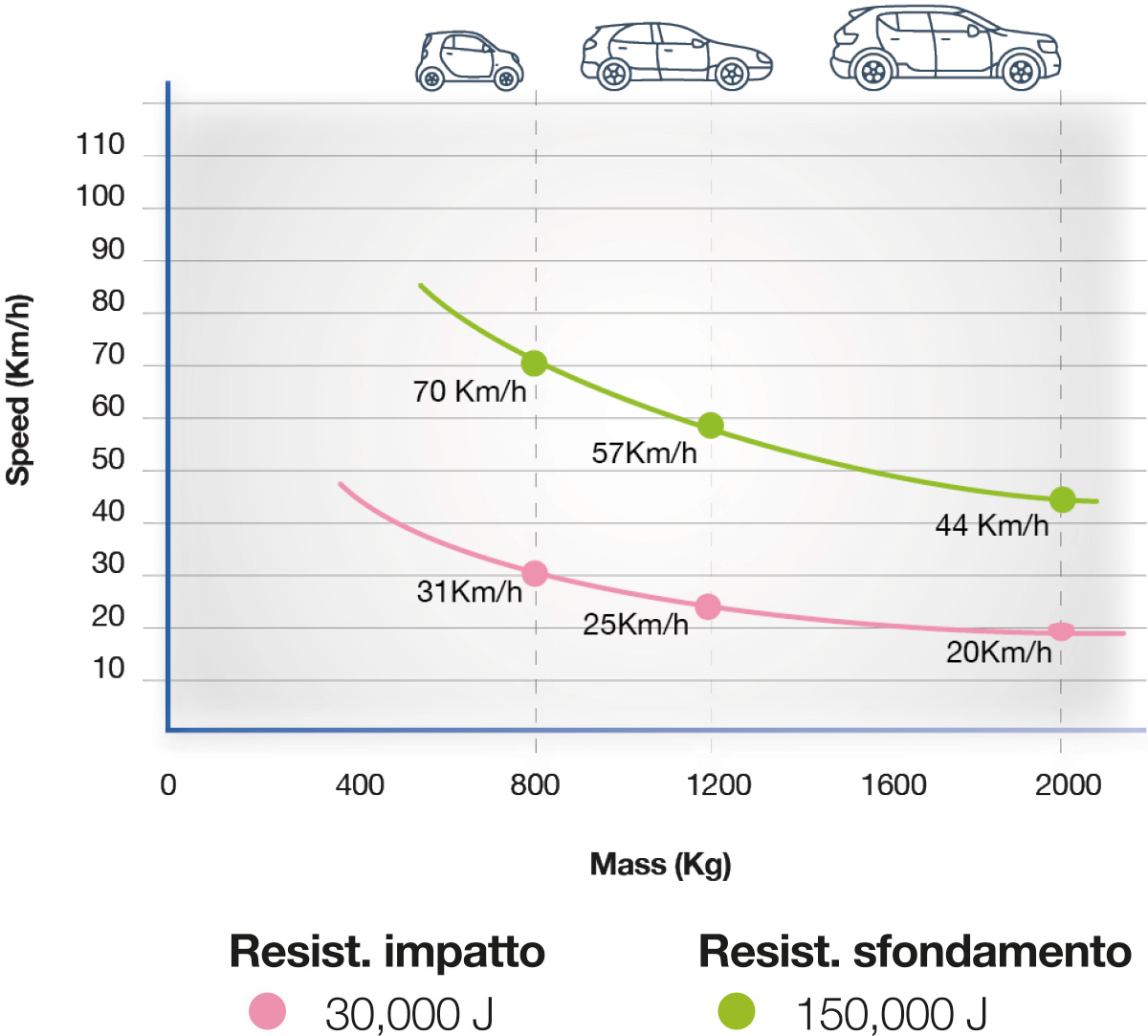 Variante della linea PF che comprende una gamma di dissuasori fissi dotati di zanche per l’ancoraggio al terreno.