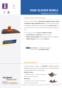 Certificata IWA 14-1:2013 e DIN SPEC 91414-1:2021, la barriera Road Blocker Mobile RBM offre una protezione sicura contro impatti di camion fino a 50 Km/j, con livelli anti-manomissione MK2. Il sistema modulare si installa rapidamente senza opere civili, consentendo il passaggio dei mezzi di soccorso grazie all’anta mobile. Ideale per eventi, manifestazioni e festival, combina sicurezza certificata e massima praticità d’uso.