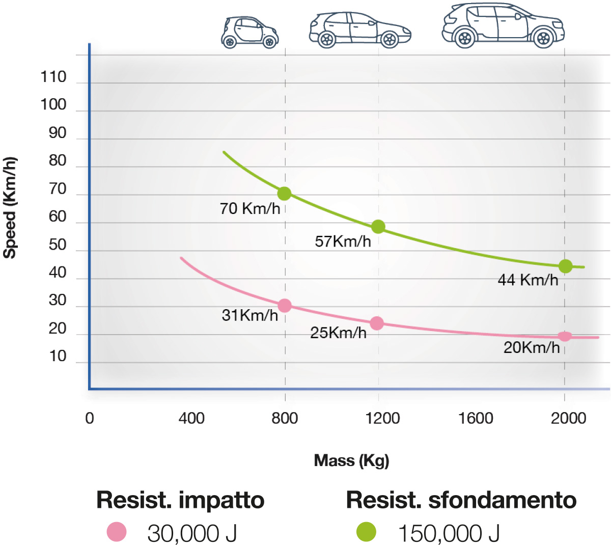 Il dissuasore fisso 127/PL 800F offre una maggiore deterrenza visiva e, grazie alla sua struttura, consente una buona resistenza agli impatti con veicoli di piccola taglia, contribuendo a spazi privati o pubblici ancora più sicuri.
